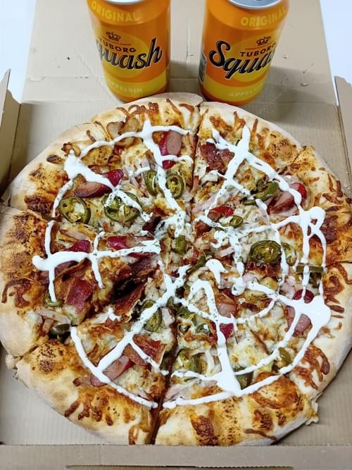 TOMATO SAUCE- CHEESE- KEBAB- PØLSER- BACON- JALAPENO